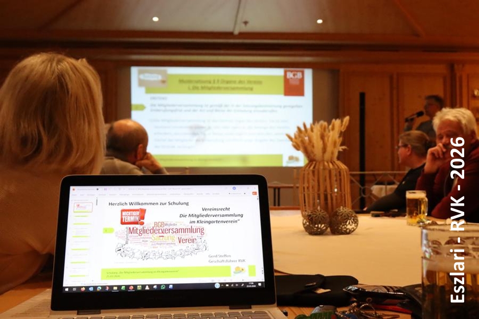 Schulung des Regionalverbandes Vogtländischer Kleingärtner e.V. Diesmal: Die Mitgliederversammlung Zum Ende des Monats, und pünktlich zum Frühlingsanfang, erfolgte eine erneute Schulung des RVK, mittlerweile traditionsgemäß im Panoramarestaurant im Möbelhaus Biller. Da sehr viele Mitgliedsvereine eine Jahreshauptversammlung im Frühjahr abhalten, ist das Schulungsthema umso passender. Unser Geschäftsführer, Gerd Steffen, ging dabei intensiv auf die verschiedensten Themen ein: Wie wird die Mitgliederversammlung vorbereitet? Wie wird denn eingeladen? Reicht ein Aushang im Schaukasten? Welche Struktur und Tagesordnungspunkte sind denn wichtig? Welche Fristen müssen denn eingehalten werden? Wie setzt sich der Vorstand zusammen und was ist denn bei Wahlen zu beachten? Welche Beschlüsse werden wie gefasst und wie viele Mitglieder braucht es denn für einen Beschluss? Das alles war sehr spannend zu verfolgen und viele Fragen konnten geklärt werden wobei eins immer wieder hervorsticht: All die Fragen lassen sich oftmals schon durch einen Blick in die Bibel des Vereines, in die Betriebsanleitung des Vereinslebens, beantworten: Die Satzung! So individuell wie die über 170 Vereine des RVK sind, so individuell sind eben auch deren Satzungen. Somit sind pauschale Aussagen zu bestimmten Fragen kaum möglich ohne den Inhalt der Satzung zu kennen. Mit ihr legt sich der Verein auf was er denn wie handhaben darf, was der Satzungszweck ist, ob es Vereinsstrafen gibt, ob Umlagen erhoben werden können und in welcher Höhe. Aufmerksam verfolgte über 50 Vertreter der Vereine die Präsenzschulung wobei ein Erkenntnissgewinn so manchem Gesicht anzusehen war. Natürlich bekommen, wie gewohnt, alle Teilnehmer die Präsentation und entsprechendes Zusatzmaterial übermittelt, ergänzend mit dem Hinweis dass ein Großteil von benötigtem Arbeitsmaterial im internen Bereich auf der Homepage bereitsteht. Nach gut 1,5 Stunden Schulung und intensivem Erfahrungsaustausch können die Vorstände und Vereinsvertreter der Kleingartenvereine mit dem frisch gewonnen Wissen nun ihre eigene Mitgliederversammlung entsprechend angehen.
