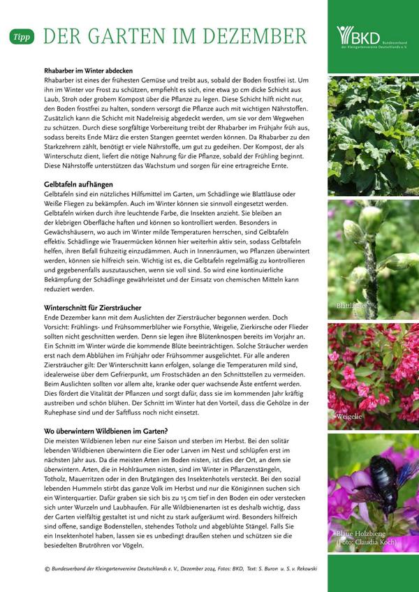 Der Landesgartenfachberater des Landesverbandes Sachsen der Kleingärtner e.V. empfiehlt in diesem Monat: