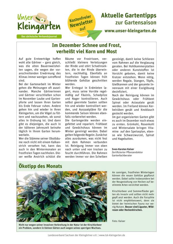 Der Fachberatertipp des LSK wird in der Zeit von Februar bis Dezember ausgegeben. Deshalb verbleibt im Januar das Exemplar vom Dezember. Hinweis: Die Dokumente sind kostenfrei zum Download erhältlich.