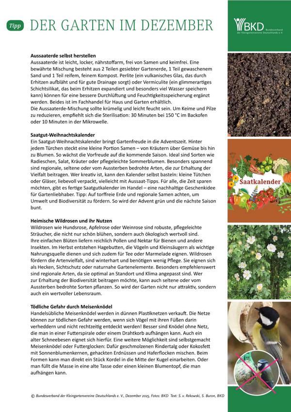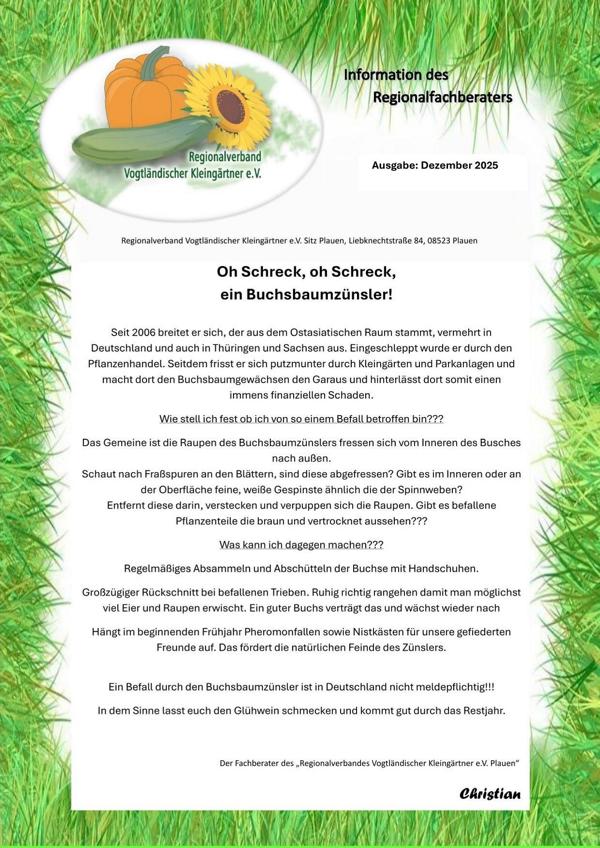 Wir empfehlen die aktuellen und monatlich neuen Fachberaterinformationen des Regionalen- und Landesgartenfachberaters: