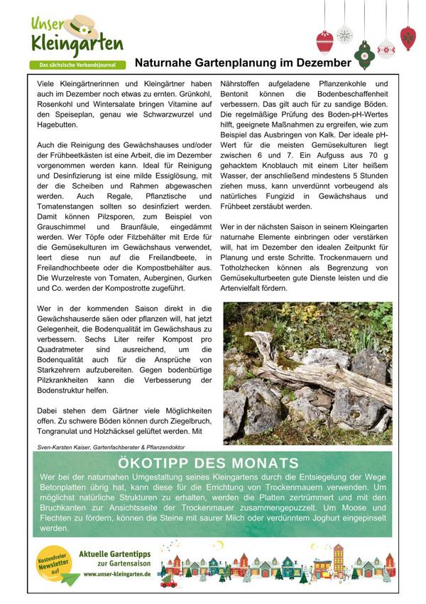Der Landesgartenfachberater des Landesverbandes Sachsen der Kleingärtner e.V. empfiehlt in diesem Monat: