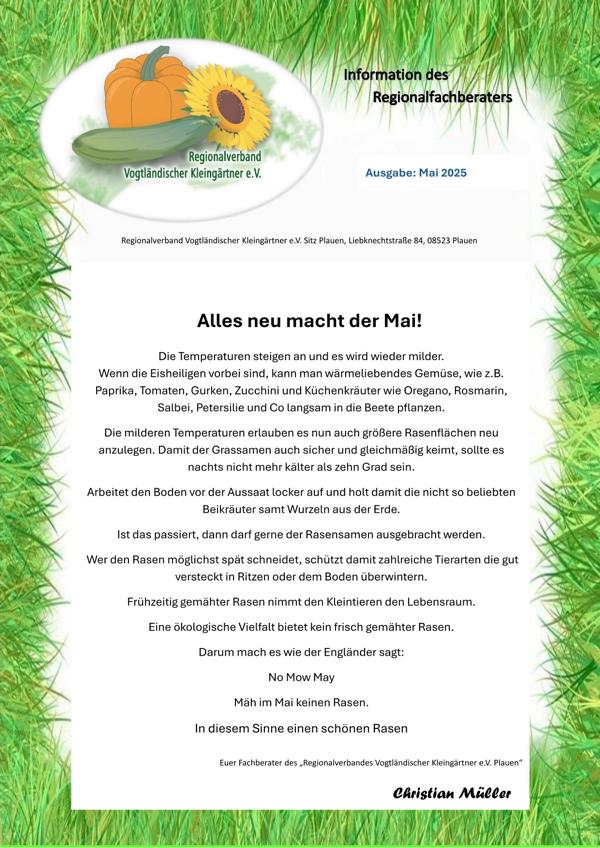 Wir empfehlen die aktuellen und monatlich neuen Fachberaterinformationen des Regionalen- und Landesgartenfachberaters: