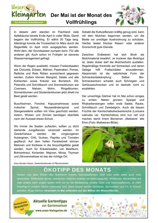 Der Landesgartenfachberater des Landesverbandes Sachsen der Kleingärtner e.V. empfiehlt in diesem Monat: