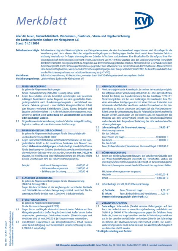 In den Verbänden des Landes Sachsen gibt es unterschiedliche Verträge mit Versicherungsgesellschaften. Wir bieten allerdings nur Versicherungen an, die durch Rahmenverträge des LSK abgeschlossen wurden. Hierdurch können wir unseren interessierten Gartenfreunden beste Preise anbieten.