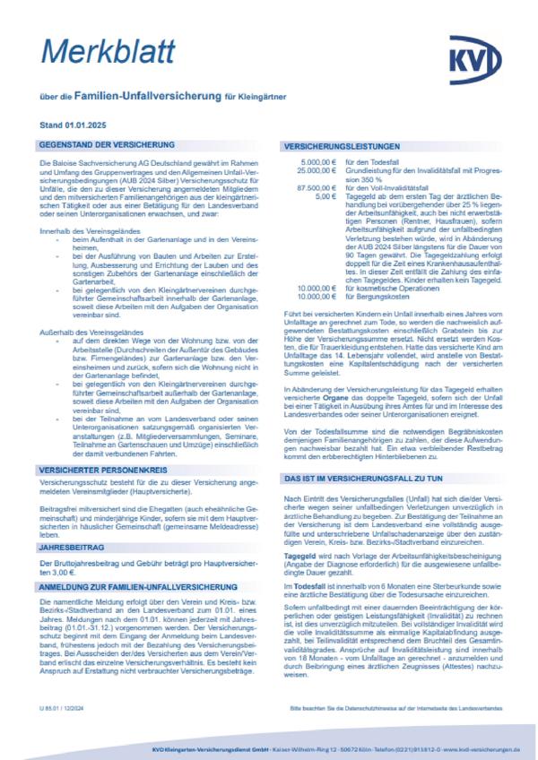 Versicherungen für unsere Kleingärtner in Mitgliedsvereinen